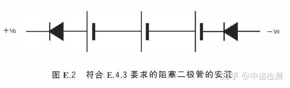 ——The electrical clearance and creepage distance specified in GB/T 3836.3 are only used to isolate the battery from other power sources, but a blocking diode as shown in Figure E.2 is installed to reduce the risk of a single fault caused by a short circuit between two diodes.